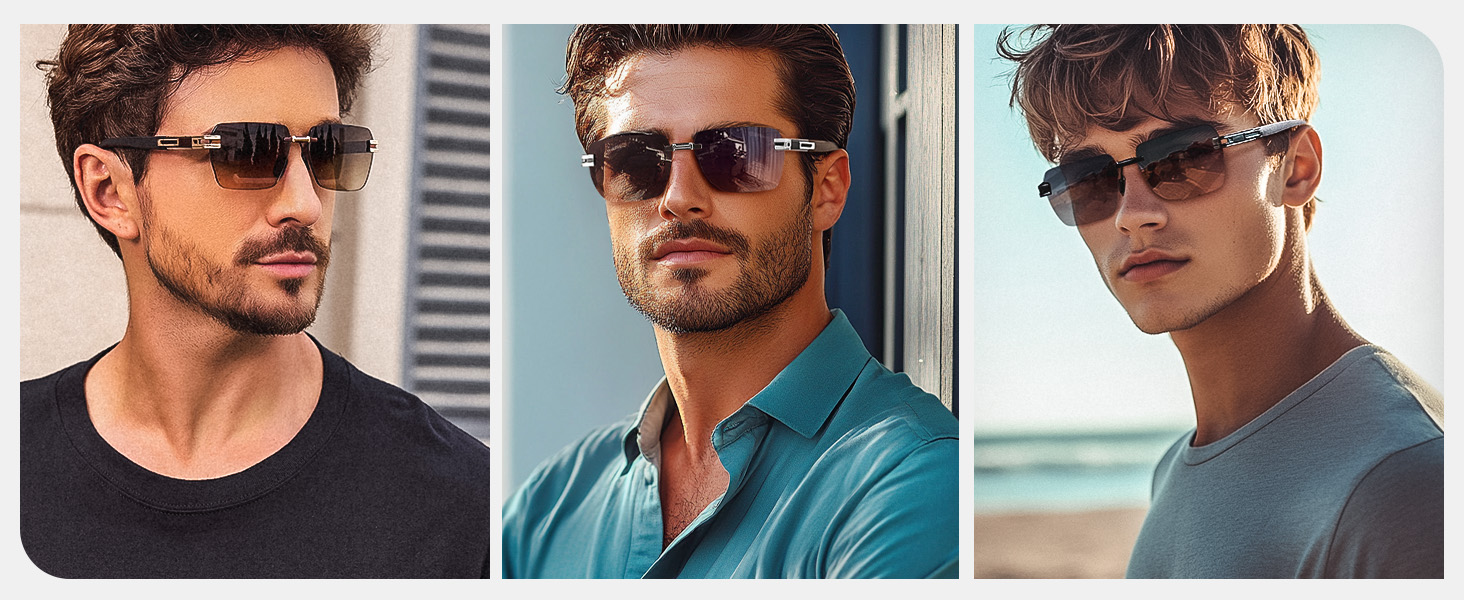 rectangle rimless sunglasses offer a sleek, modern look that's perfect for